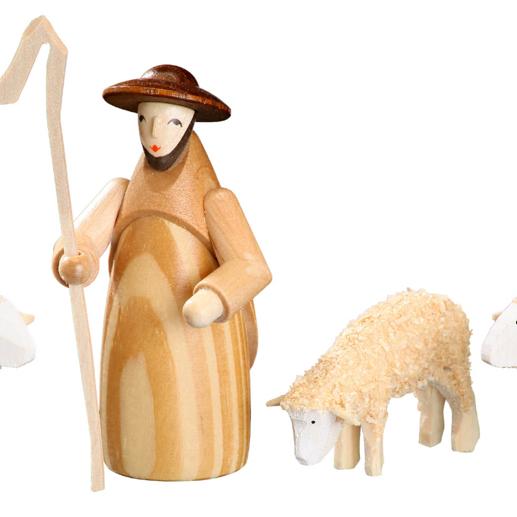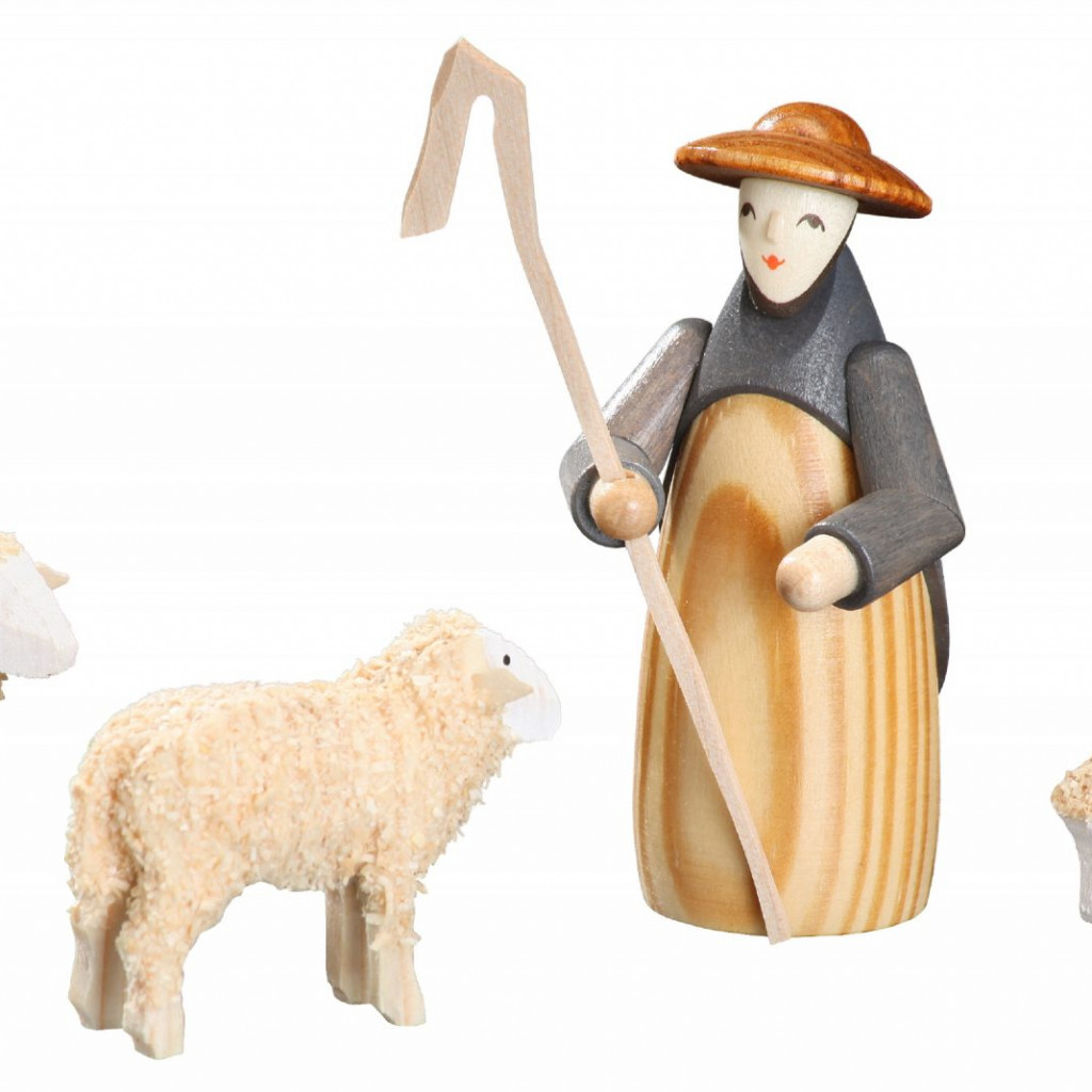 Krippenfiguren, Hirtengruppe, naturfarbig , ca. 9 cm