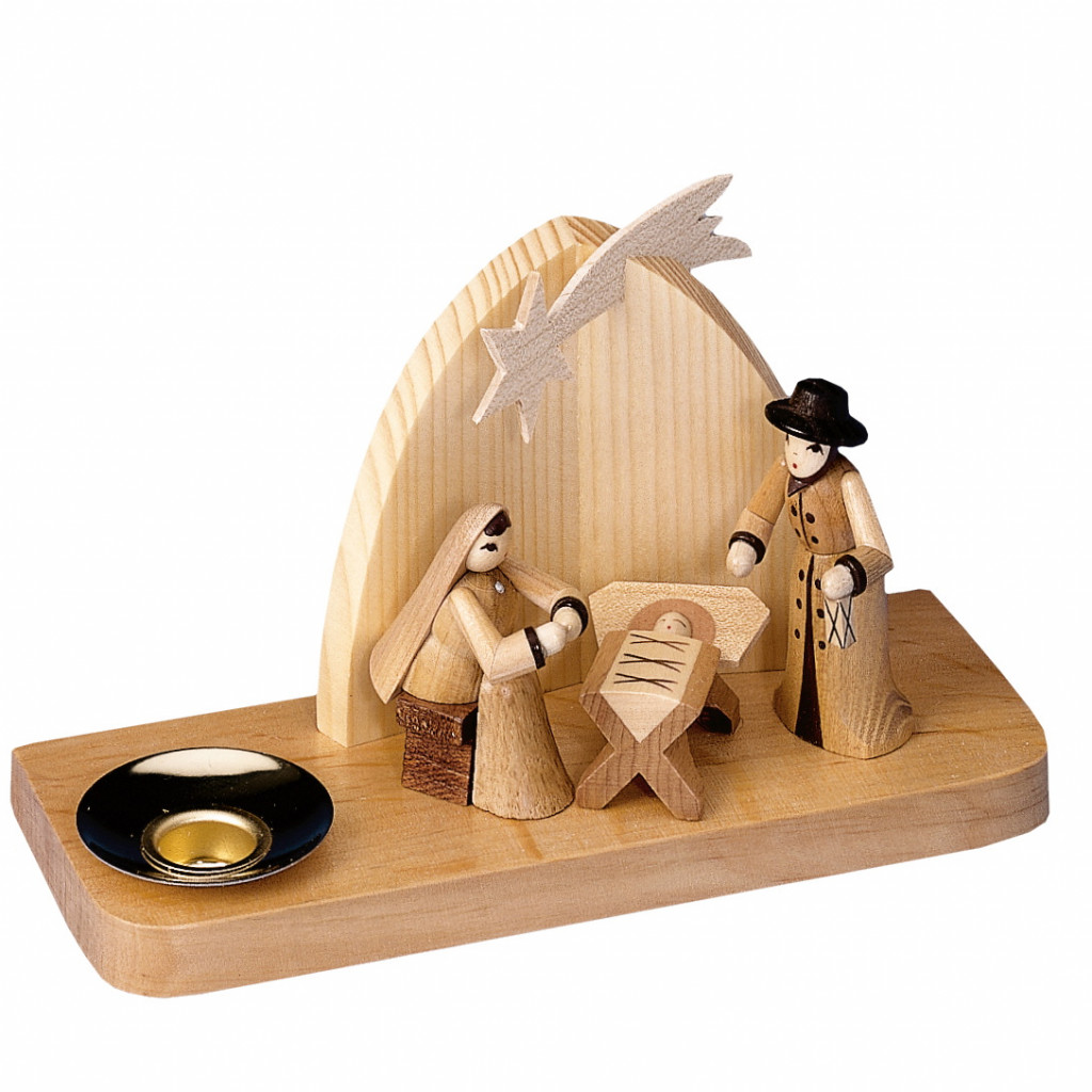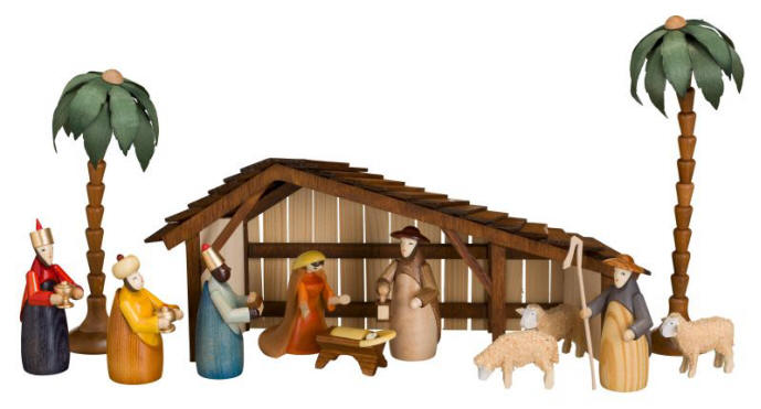 Krippe mit Palmen, Kerzenhalter Figuren natur ca. 6 cm Höhe ca. 15 cm