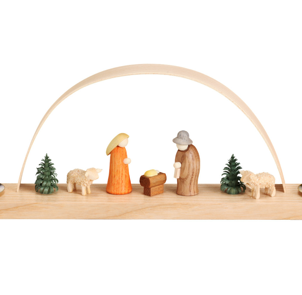 Schwibbogen mit Krippenhaus, Figuren 6 cm, natur