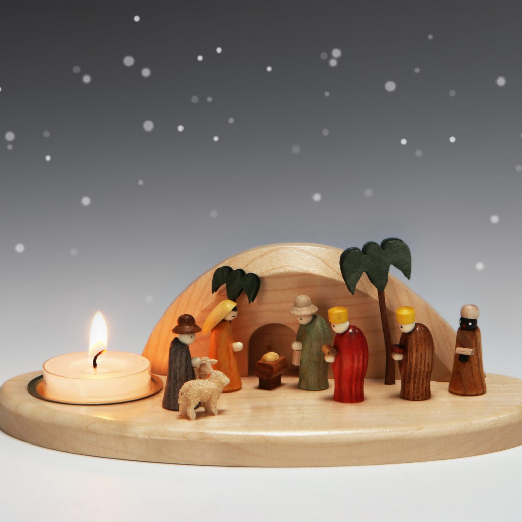 Heilige Familie, Hirte mit 2 Schafen, Könige, Palmen